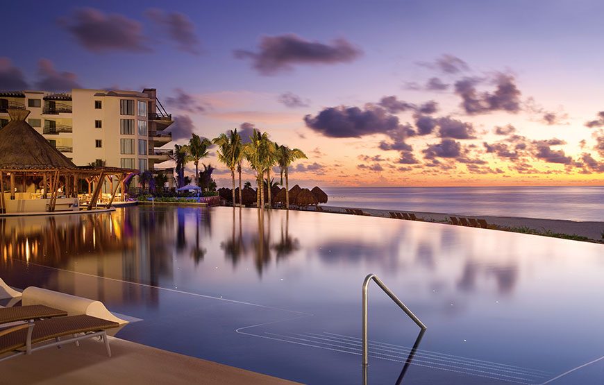 Set along a natural white-sand beach in the Riviera Maya, surrounded by lush tropical gardens and the crystal-clear Caribbean, Dreams Riviera Cancun Resort & Spa is a luxurious oasis for couples and families. Ideally located close to the excitement of Cancun and Playa del Carmen, this AAA Four Diamond resort is an enchanting wonderland of glistening pools and impressive ocean views with unique octagonal-shaped rooms and suites.