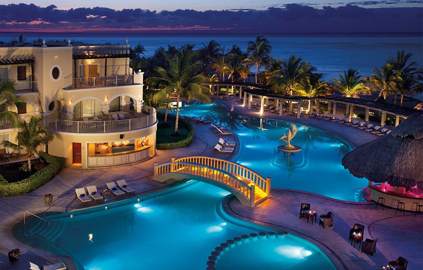 This beautiful all-inclusive family resort in Mexico will leave you in awe. Explore family-friendly attractions like the ancient Mayan ruins and the Xel-Ha natural aquapark in the historical town of Tulum, or lounge by the pool or on the beach with a refreshing chilled beverage or tropical cocktail. At Dreams Tulum, a AAA Four Diamond Award-winning resort situated along 44 breathtaking acres of coastline and jungle, Unlimited-Luxury® has never looked so good.